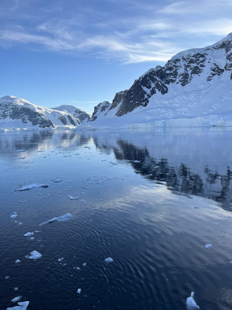 Nov. 19, 2025: Overnight our ship slipped into calm, azure waters near Cuverville Island, just off the Antarctic Peninsula shoreline. Many non-scientific research Antarctic expeditions like ours take visitors here because it’s the closest point where vessels from Argentina can reach the continent without traveling farther for weeks or months. The rest of this 5 million-square-mile land is simply too remote and inhospitable for us humans, except for scientists and explorers who devote months, even years to the endeavor, and use special clothes, buildings, and equipment.